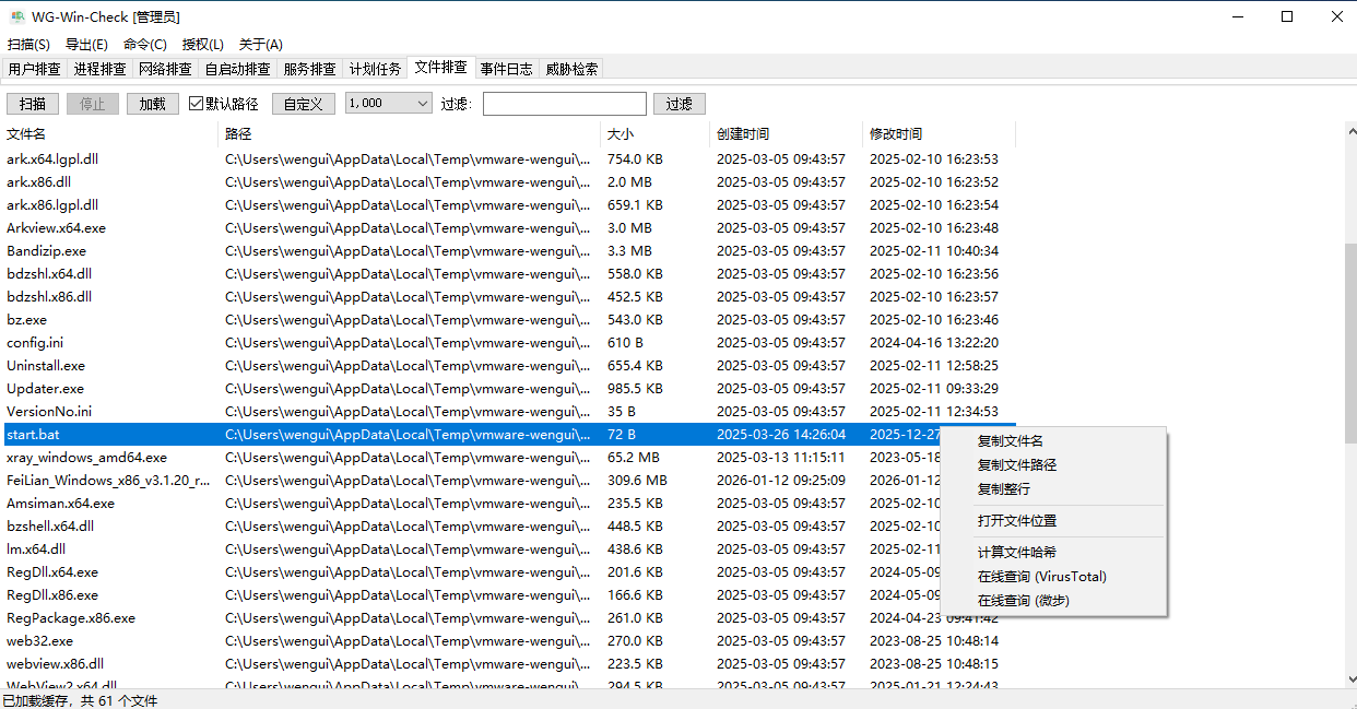 扫描常见的恶意文件落地目录包括下载、临时目录,过滤常见的恶意文件落地类型,支持自定义扫描路径如微信、飞书文件下载路径的扫描。