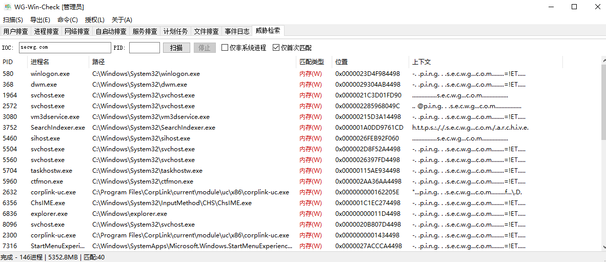威胁检索 - 基于进程内存特征的威胁检索,快速定位威胁进程