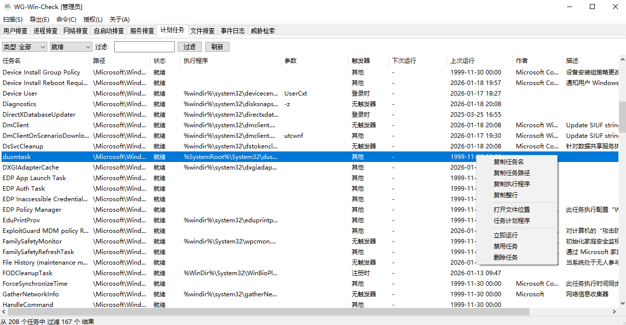 计划任务排查 - 扫描系统计划任务,显示任务状态、触发器和执行程序