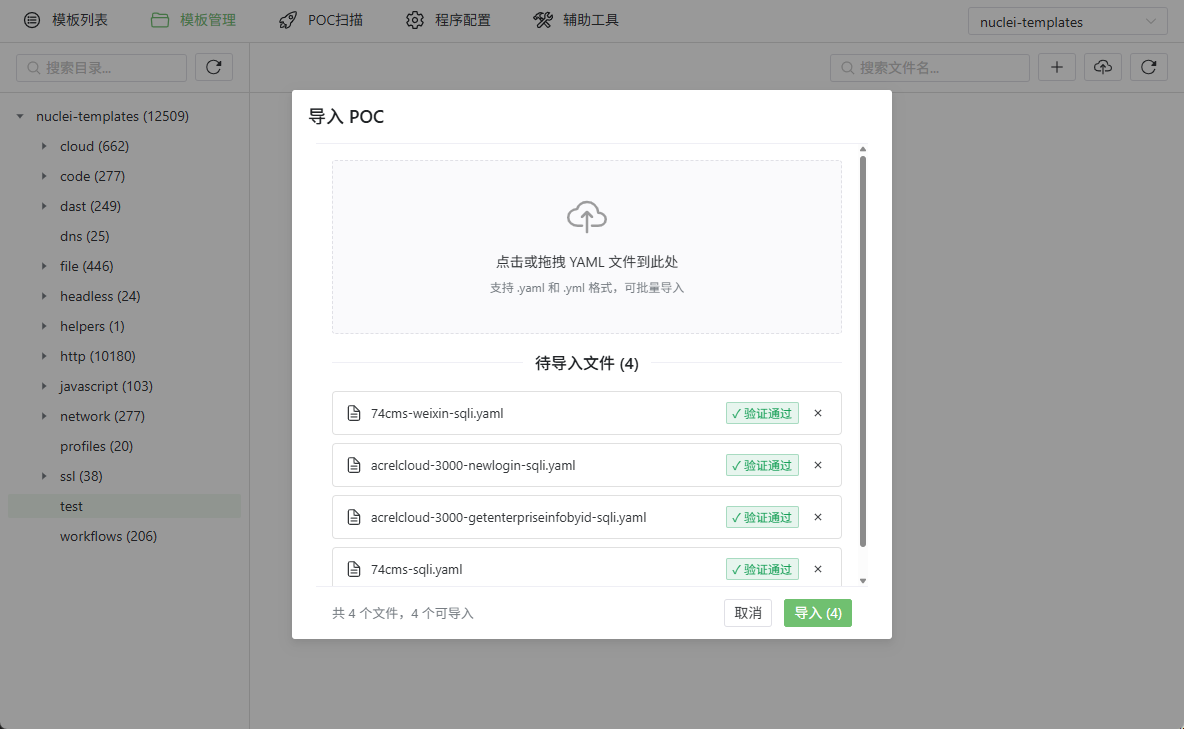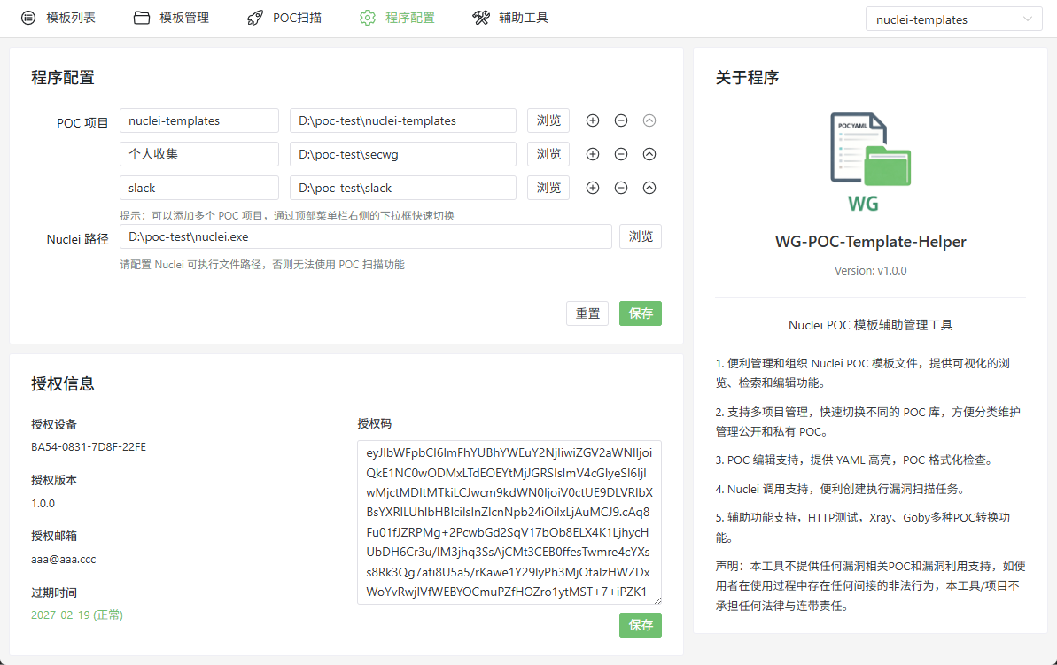一款 Nuclei POC 模板维护工具,提供可视化的浏览、搜索、编辑和扫描功能,提供多项目管理,快速切换不同的 POC 库,方便分类维护管理公开和私有 POC。