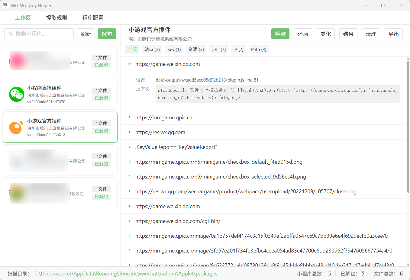 选中小程序后依次执行:解包 → 检测