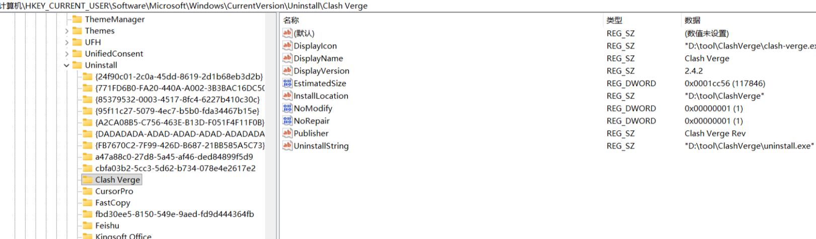 在实际场景中,用户可能会通过钓鱼网站或诱导下载并安装假冒或带后门的应用程式,而白加黑利用中也常需要一个看似合法的程序作为宿主。通过排查 Uninstall 注册表,可以发现与恶意木马运行关联的程序,确定来源。