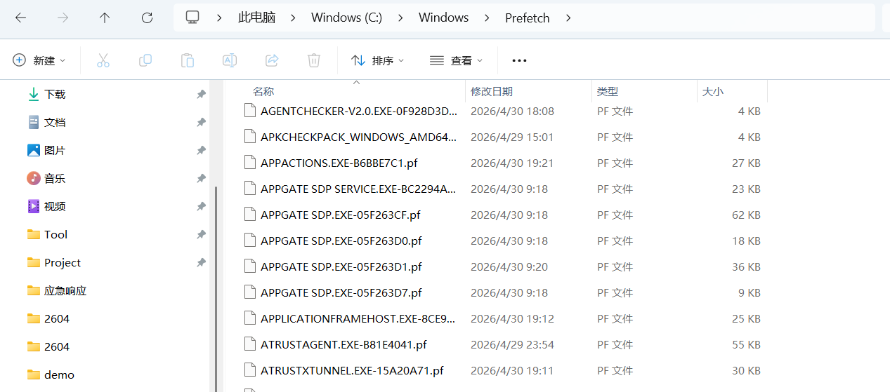 Prefetch 文件是确认程序是否被执行过的首要证据。在无 EDR的场景下,它是证明“恶意程序曾经运行过”最有力的唯一痕迹。很多攻击者会删除恶意程序本体,却不会去清空 Prefetch 目录。